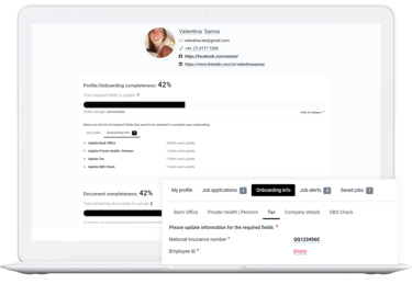 健康診断や資格証明書などの事前確認が必要な書類を候補者がポータル上で直接提出できます。